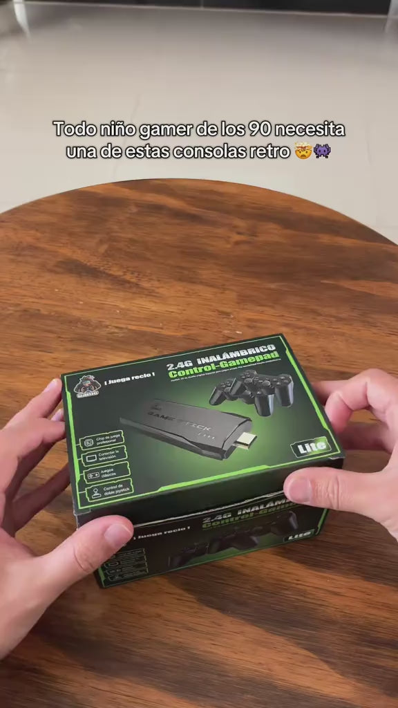 Revive la nostalgia de los videojuegos clásicos con nuestra consola retro M8 . Este mini sistema arcade es perfecto para divertirse en familia y reavivar los mejores recuerdos de la infancia. Gracias a su mando inalámbrico de 2.4 GHz , podrás disfrutar de una experiencia de juego fluida y sin cables enredados.